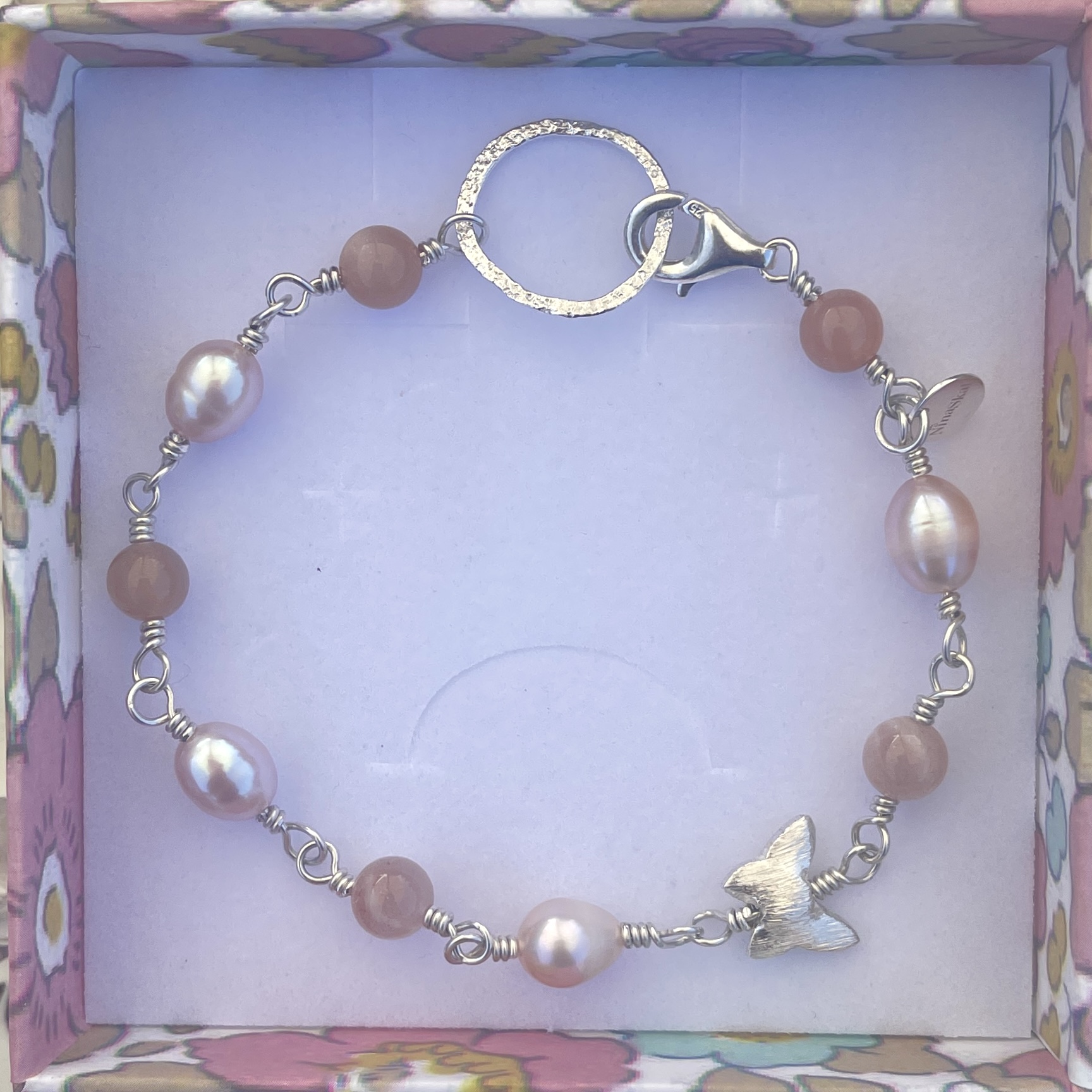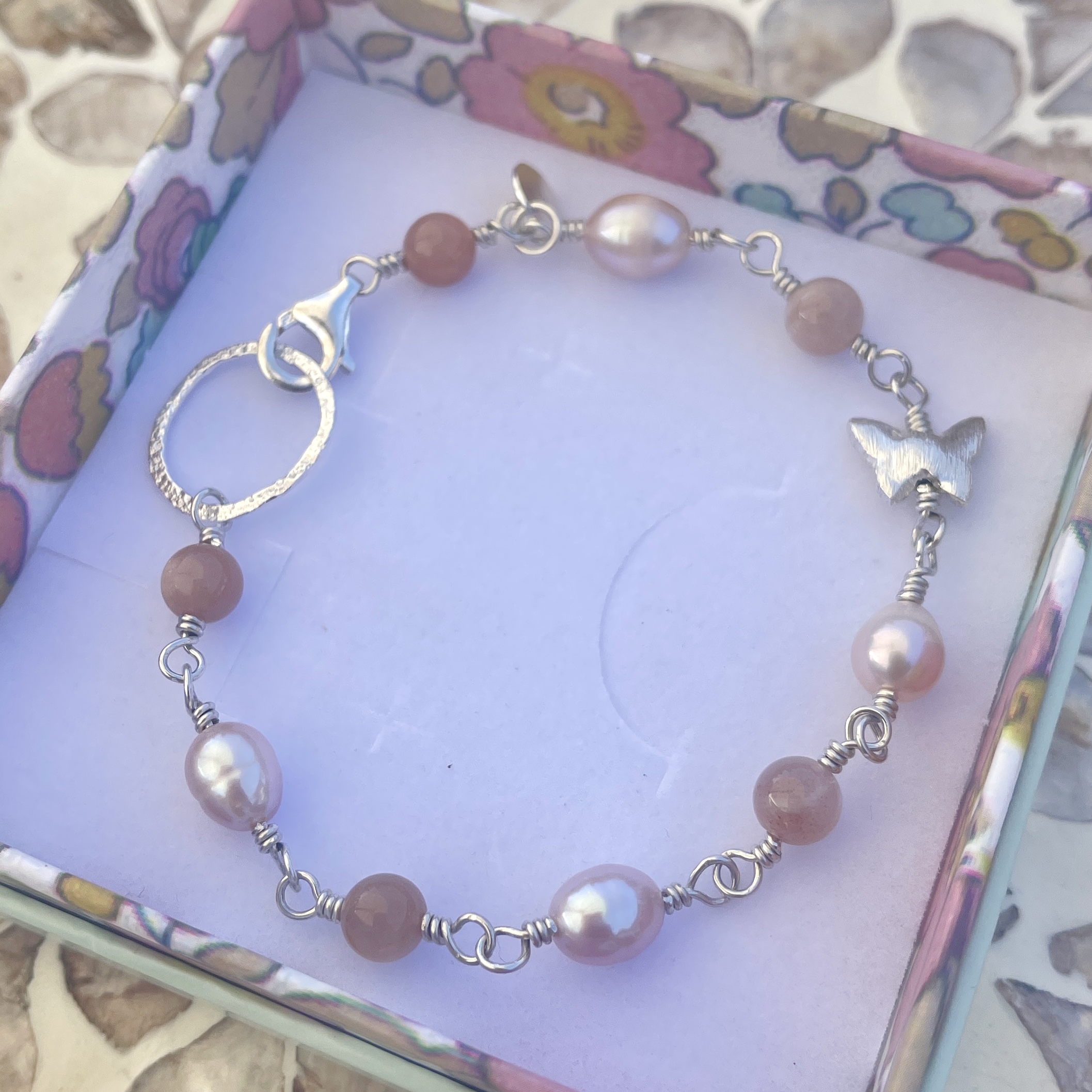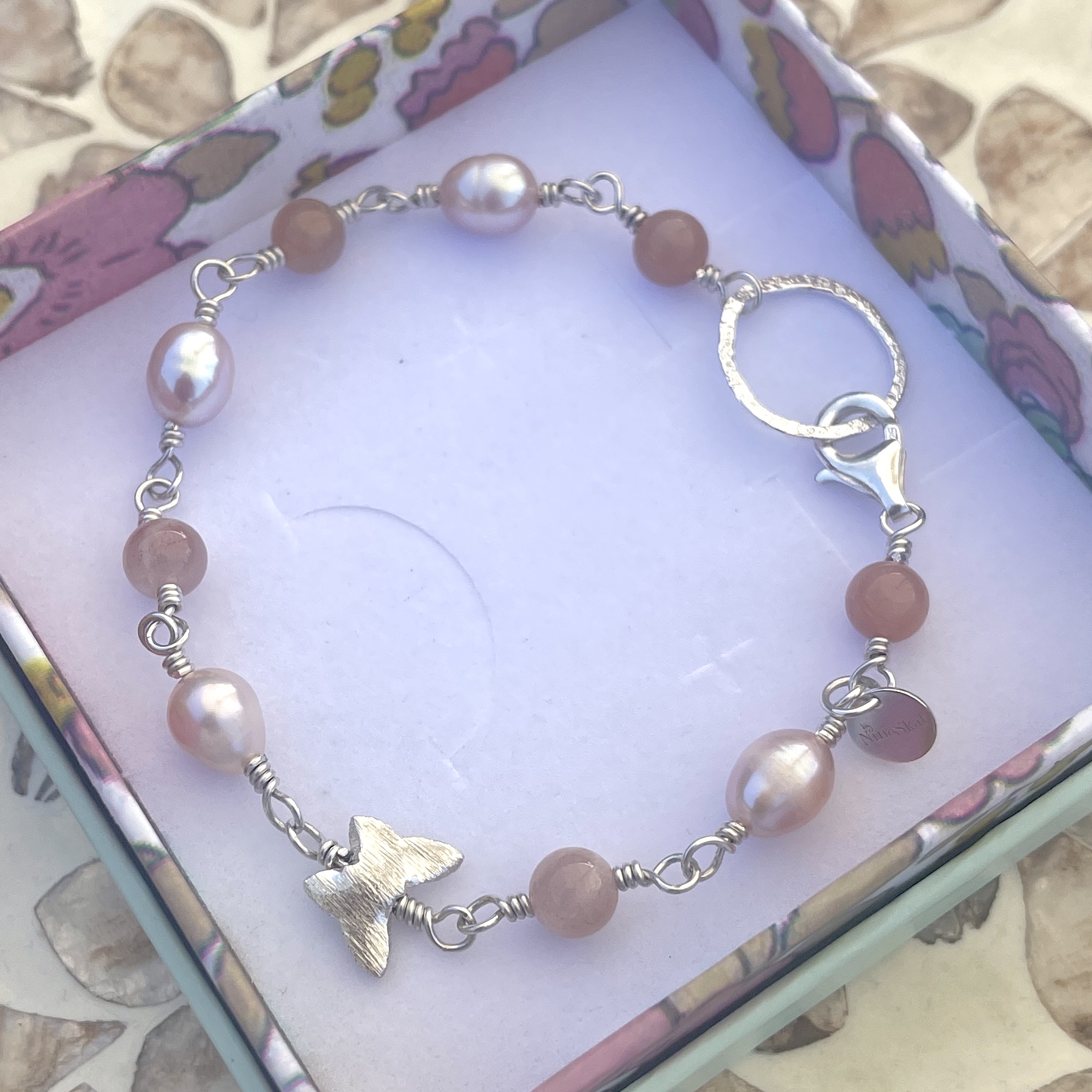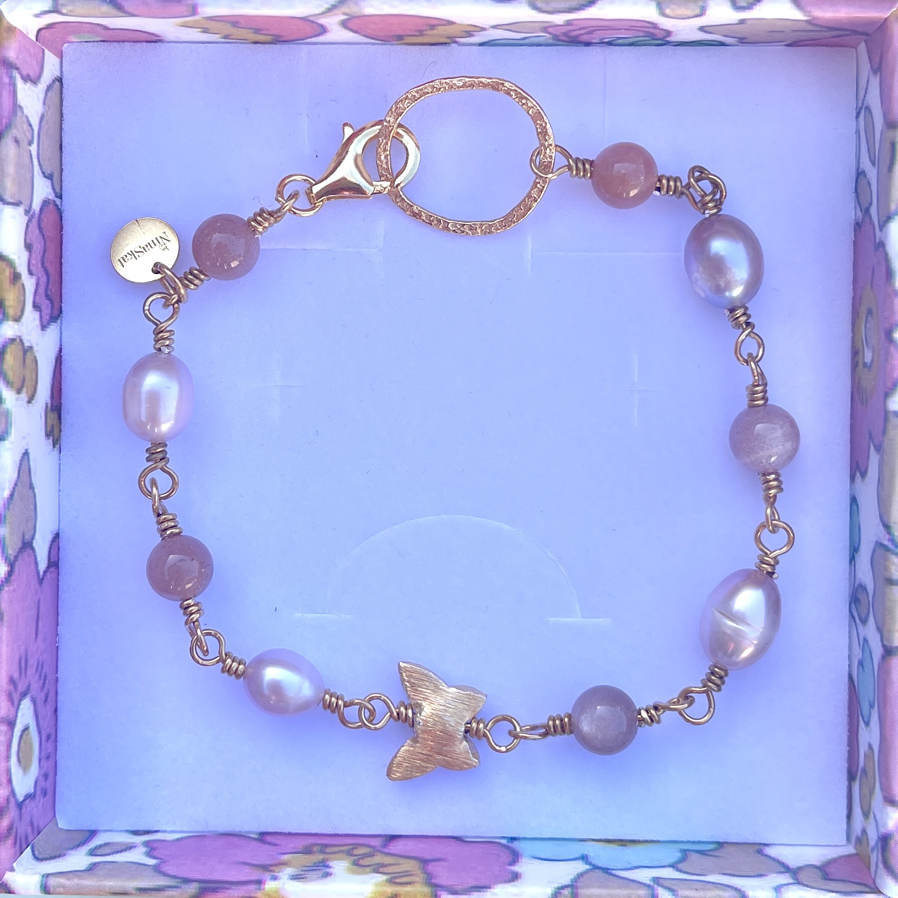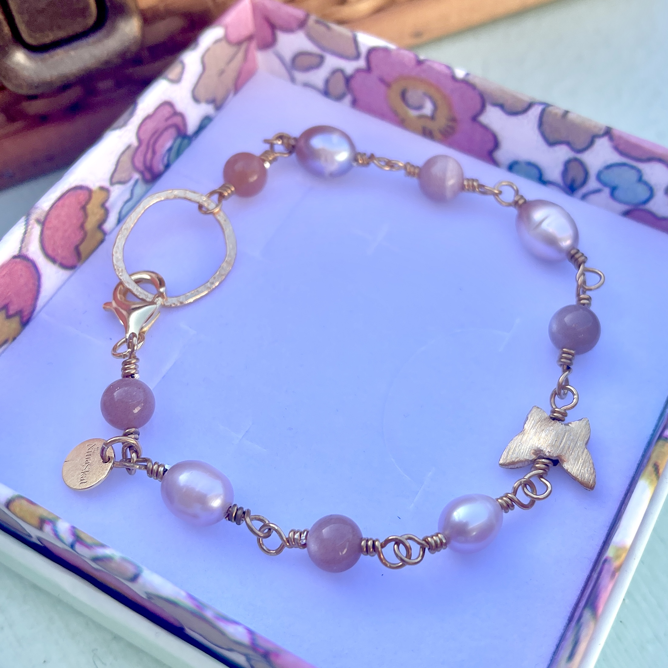 • Dansk håndlavet armbånd i romantiske pudderfarvede pasteltoner