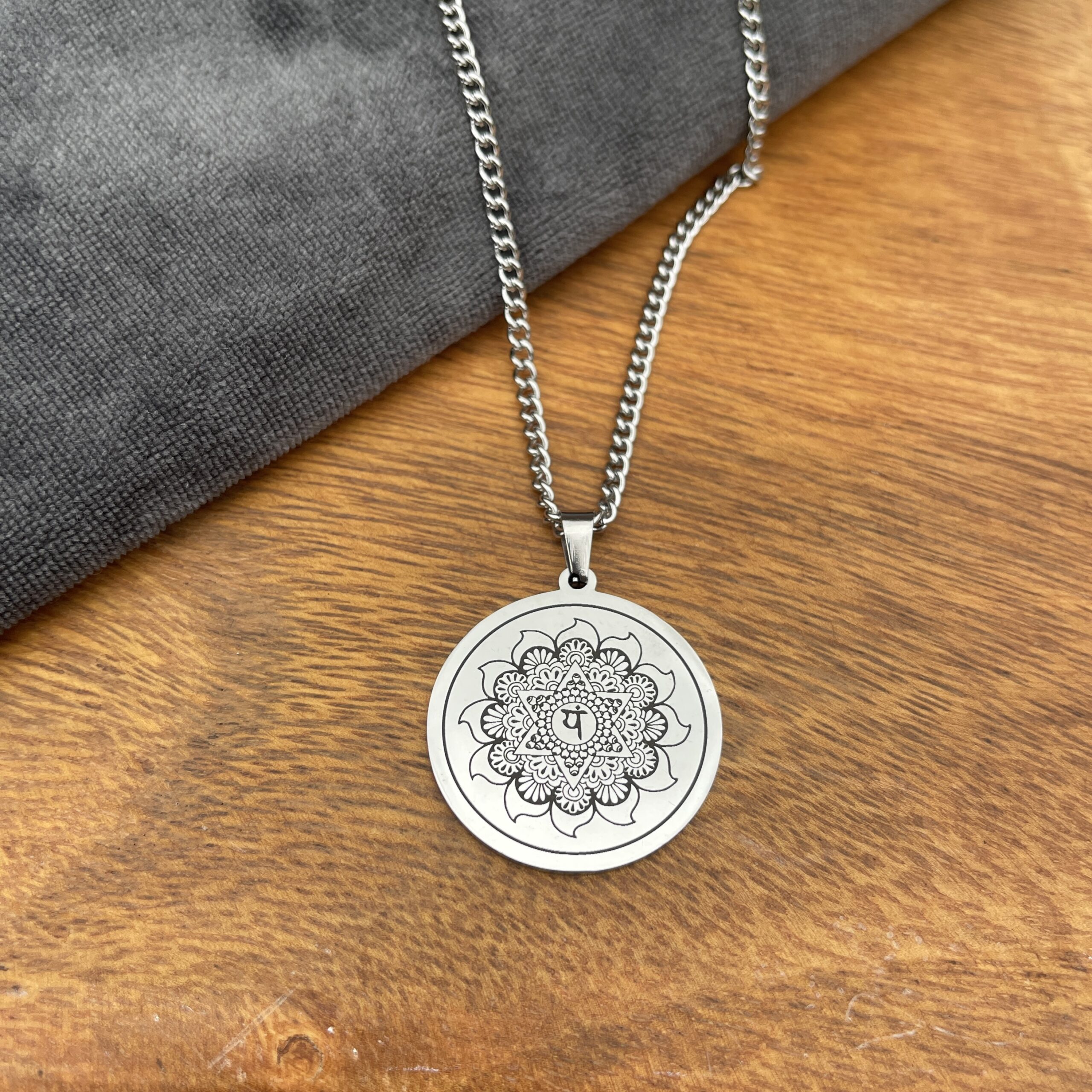 Stålhalskæde med Lotus & Mandala 4– Spirituelt symbol i moderne design