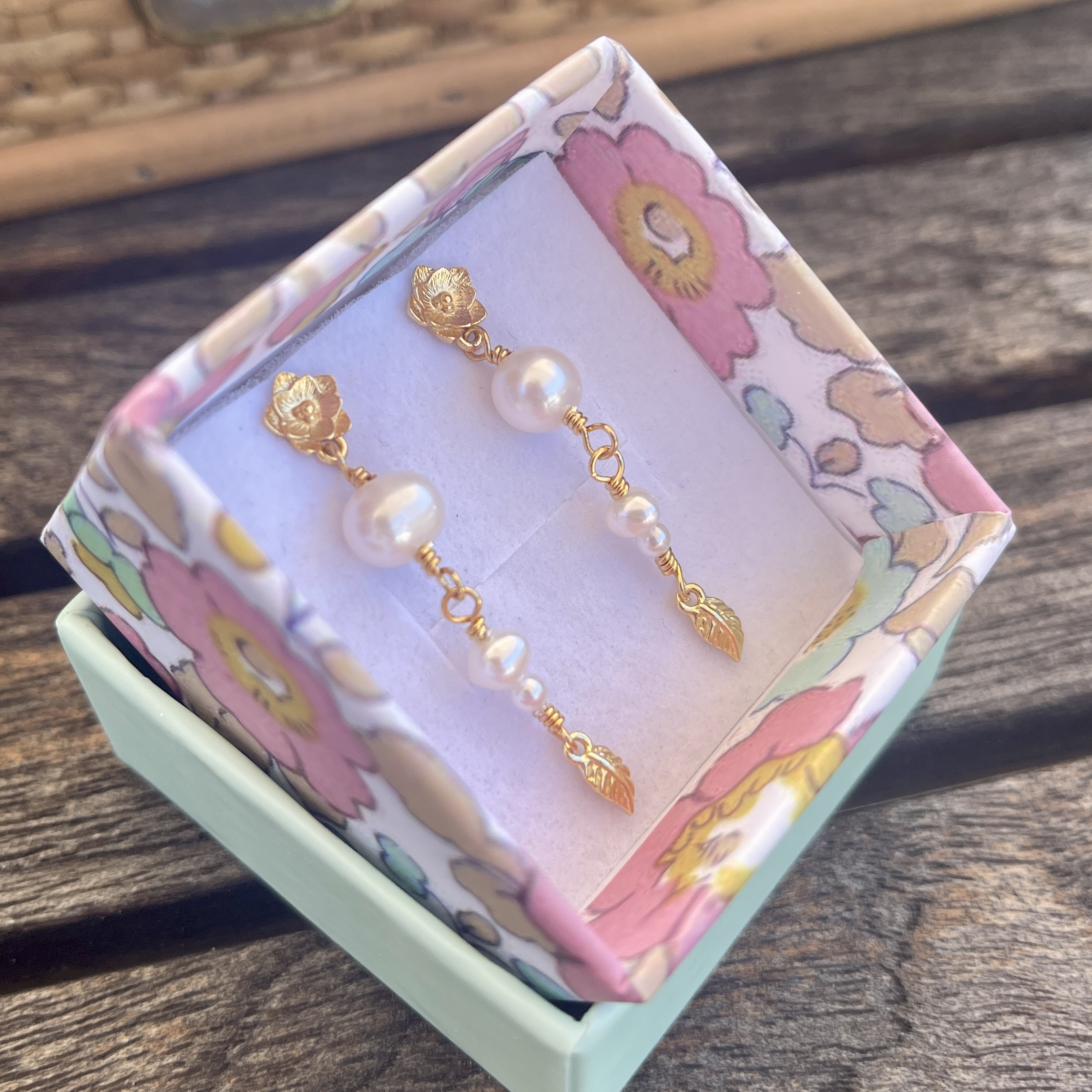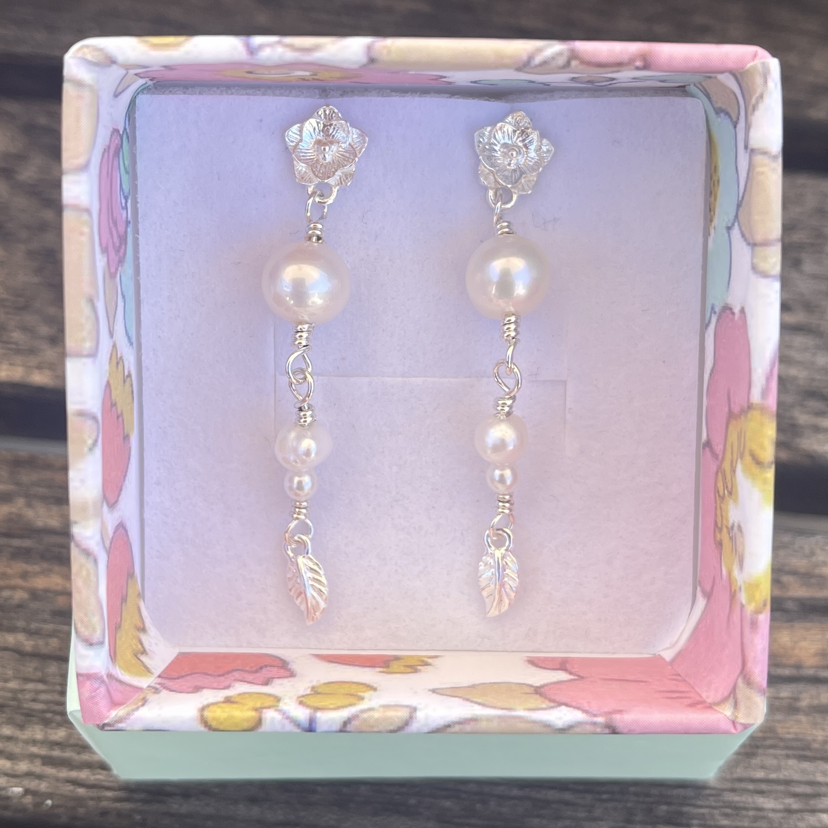 Materiale: Vælg ml. sterlingsølv eller 18 karat guldbelagt sterlingsølv. Ørestik med blomst og ferskvandsperler.