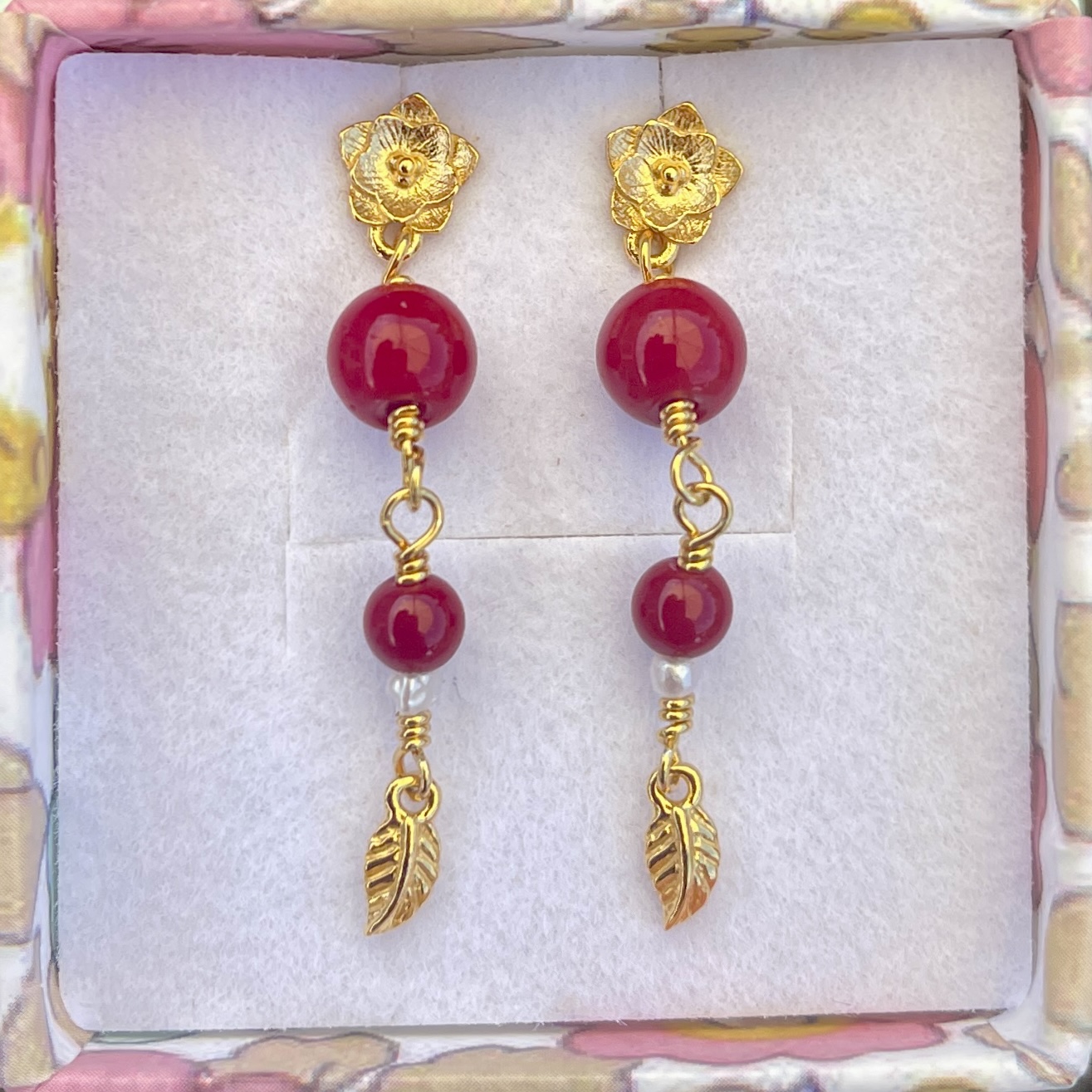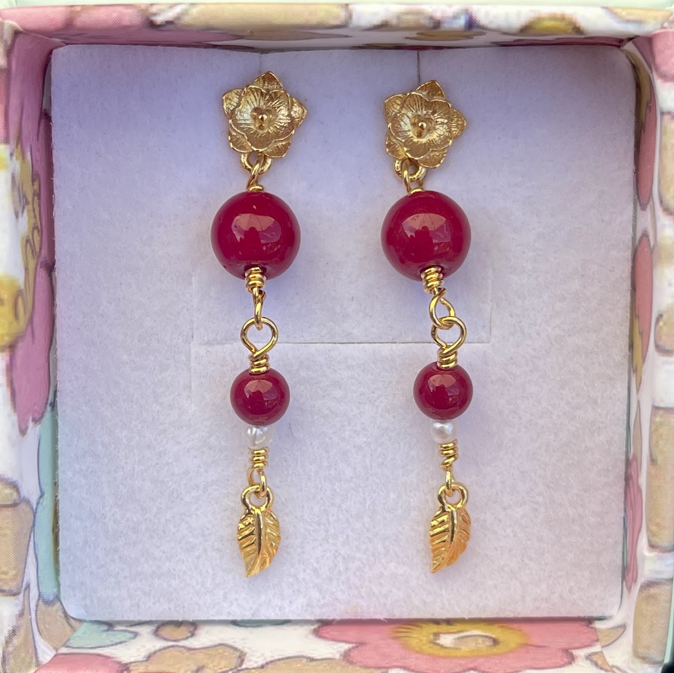 Materiale: Vælg ml. sterlingsølv eller 18 karat guldbelagt sterlingsølv. Ørestik med blomst og jade og ferskvandsperle.